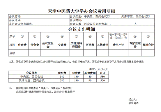 (一)基础附件:举办会议通知、实际参会人员签到表(各会务组根据会议需求自制即可)、《天津中医药大学举办会议费用明细》表(下载地址:天津中医药大学财务处-下载中心-各类报销单粘贴单下载),见图1。